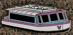 White with light blue and purple trim boat is an Open Edition pin from the 2013 Hidden Mickey - Friendship Boats pin series. It was originally released in January, 2013 and was available from Walt Disney World .
