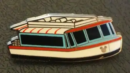 White with red and light blue trim boat is an Open Edition pin from the 2013 Hidden Mickey - Friendship Boats pin series. It was originally released in January, 2013 and was available from Walt Disney World .