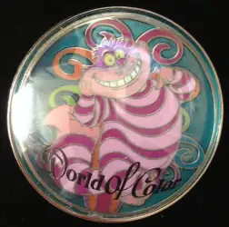 Cheshire Cat is a Limited Release pin from the World of Color Bubble Mystery Collection pin series. It was originally released on , 2013 and was available from Disneyland Resort .