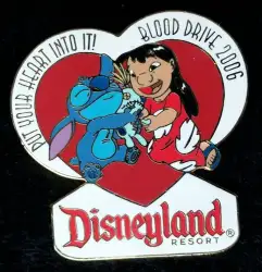 Lilo & Stitch -2006 is a Limited Edition (LE) pin from the Cast Member - Blood Drive pin series. It was originally released on , 2006 and was available from Disneyland Resort .