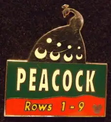 Peacock (Rows 1-9) is an Open Edition pin from the Cast Lanyard Collection III - Animal Kingdom Parking Signs pin series. It was originally released in January, 2005 and was available from Walt Disney World .