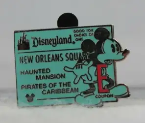"E" New Orleans Square is a Limited Release pin from the Cast Lanyard Series III - Disneyland Tickets pin series. It was originally released in January, 2005 and was available from Disneyland Resort .