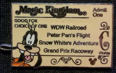 "C" Coupon is an Open Edition pin from the Cast Lanyard Collection III - Magic Kingdom Tickets (With Mickey Icon) pin series. It was originally released in January, 2005 and was available from Walt Disney World .