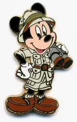 Mickey in Safari Gear and Binoculars is an Open Edition pin from the Safari Disney Characters pin series. It was originally released on , 2000 and was available from Multiple Sources (WDW, DLR, etc.).