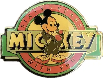 Mickey Mouse Sixty Years with You (pink & aqua version; no film strip) is an Open Edition pin. It was originally released on , 1988 and was available from Multiple Sources (WDW, DLR, etc.).