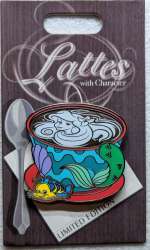 Ariel is a Limited Edition (LE) 3000 pin from the Lattes With Character Series pin series. It was originally released on , 2018 and was available from Multiple Sources (WDW, DLR, etc.).