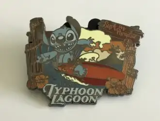 Surf in Paradise Stitch is an Open Edition pin from the Typhoon Lagoon pin series. It was originally released in January, 2018 and was available from Walt Disney World .