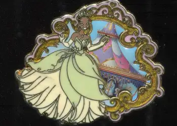 Tiana is an Open Edition pin from the Princess Carousel Starter Set pin series. It was available from Multiple Sources (WDW, DLR, etc.).