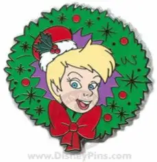 Tinker Bell is a Limited Edition (LE) 600 pin from the Happy Holiday Wreaths Mystery Tin Collection pin series. It was originally released on , 2008 and was available from Walt Disney World .
