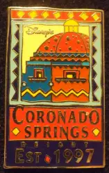 Disney's Coronado Springs Resort Est. 1997 is an Open Edition pin from the Walt Disney World Resort Hotels Est. Collection (2001) pin series. It was originally released in January, 2001 and was available from Walt Disney World .
