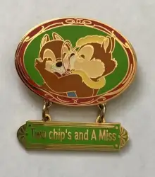Two Chips and a Miss Dangle is a Limited Edition (LE) 10000 pin from the Mickey & Pals - Sweet Kiss pin series. It was originally released on , 2001 and was available from an Officially Licensed Disney trading pin vendor (see description for more information).