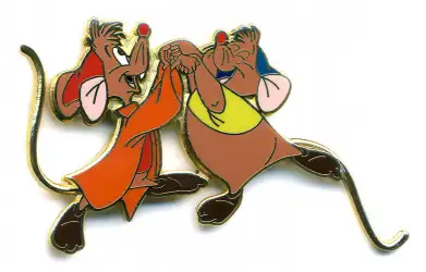 Gus & Jaq Dancing is a Limited Edition (LE) 2000 pin in the Magical Moments - Cinderella Set 6-pin set from the Disney Gallery - Magical Moments pin series. It was originally released on , 2000 and was available from an Officially Licensed Disney trading pin vendor (see description for more information).