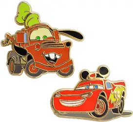 Mater and Lightning McQueen Wearing Ear Hats Set is an Open Edition 1-pin set. It was originally released in January, 2011 and was available from Multiple Sources (WDW, DLR, etc.).