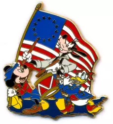 Mickey, Goofy, Donald - Fab 3 - America on Parade - Bicentennial is an Open Edition pin from the Patriotic Characters pin series. It was originally released on , 2005 and was available from Multiple Sources (WDW, DLR, etc.).