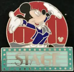 Stage is a Limited Release pin from the Cast Lanyard Collection III - MGM Parking Sign pin series. It was originally released on , 2005 and was available from Multiple Sources (WDW, DLR, etc.).