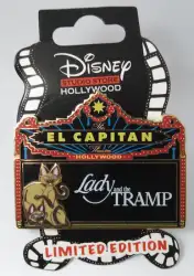 Lady and the Tramp #4 - Si and Am is a Limited Edition (LE) 500 pin from the El Capitan Marquee Series pin series. It was originally released on , 2014 and was available from Disney Studio Store Hollywood / Soda Fountain .