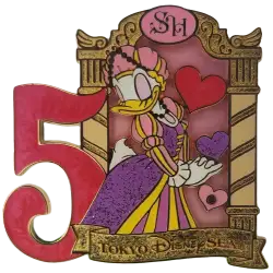 5th Anniversary - Season of the Heart/Princess Daisy Duck is an Open Edition pin from the Tokyo DisneySea Anniversaries pin series. It was originally released on , 2007 and was available from Tokyo Disneyland Resort .