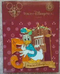 5th Anniversary (Donald Duck/Tower of Terror) is an Open Edition pin from the Tokyo DisneySea Anniversaries pin series. It was available from Tokyo Disneyland Resort .