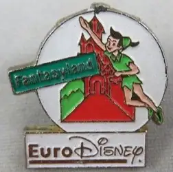 Fantasyland (Peter Pan) GWP is an Open Edition pin from the Euro Disney pin series. It was available from an Officially Licensed Disney trading pin vendor (see description for more information).