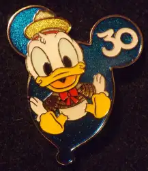 30th Anniversary Balloon - Donald Duck is a Limited Release pin from the Tokyo DisneySea Abu's Bazaar Game Prizes pin series. It was originally released on , 2013 and was available from Tokyo Disneyland Resort .