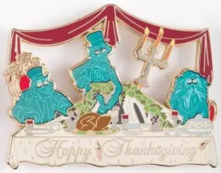 2013 - The Hitchhiking Ghosts and Thanksgiving Dinner is a Limited Edition (LE) 250 pin from the Thanksgiving pin series. It was originally released on , 2013 and was available from Walt Disney Imagineering .