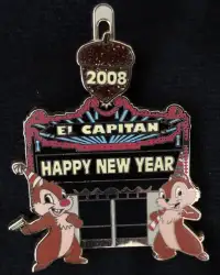 El Capitan Theatre Marquee - Happy New Year 2008 - Chip & Dale is a Limited Edition (LE) 300 pin from the New Year's Eve/Day pin series. It was originally released on , 2008 and was available from Disney Studio Store Hollywood / Soda Fountain .
