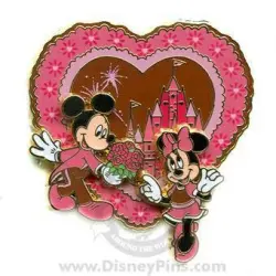 Mickey and Minnie on Pink Heart with Scalloped Border is an Open Edition pin from the Valentine's Day pin series. It was originally released on , 2007 and was available from Multiple Sources (WDW, DLR, etc.).