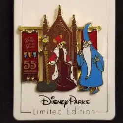 King Arthur is a Limited Edition (LE) 2000 pin from the The Sword in the Stone 55th Anniversary pin series. It was originally released on , 2018 and was available from Multiple Sources (WDW, DLR, etc.).