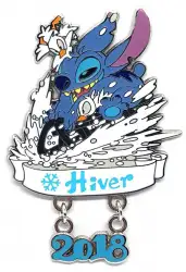 Hiver 2018 Stitch and ducklings is a Limited Edition (LE) 700 pin from the Disneyland Paris Seasons pin series. It was originally released on , 2018 and was available from Disneyland Resort Paris .