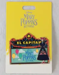 Mary Poppins Returns is a Limited Edition (LE) 400 pin from the El Capitan Marquee Series pin series. It was originally released on , 2018 and was available from Disney Studio Store Hollywood / Soda Fountain .