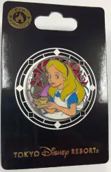 Alice is a Limited Release pin from the Tokyo Stained Glass Princess Series pin series. It was originally released on , 2015 and was available from Tokyo Disneyland Resort .