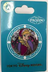 Anna is a Limited Release pin from the Tokyo Stained Glass Princess Series pin series. It was originally released on , 2015 and was available from Tokyo Disneyland Resort .