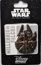 MIllennium Falcon is a Limited Edition (LE) 500 pin from the Star Wars Pin Trading Event pin series. It was originally released on , 2015 and was available from Disney Studio Store Hollywood / Soda Fountain .
