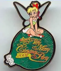 Tinker Bell Sitting on a Green Ornament is a Limited Edition (LE) 2500 pin from the Mickey's Very Merry Christmas Party (MVMCP) 2002 pin series. It was originally released on , 2002 and was available from Walt Disney World .