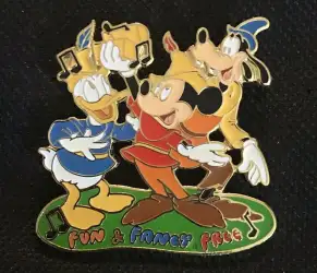 Pin features Donald Duck , Goofy and Mickey Mouse from Fun and Fancy Free