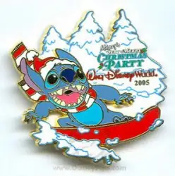 Snowboarding Stitch is a Limited Edition (LE) 2000 pin from the Mickey's Very Merry Christmas Party (MVMCP) 2005 pin series. It was originally released on , 2005 and was available from Walt Disney World .
