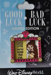 Belle is a Limited Edition (LE) 1000 pin from the Good Luck, Bad Luck Slider Series pin series. It was originally released on , 2013 and was available from Walt Disney World .