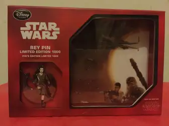 Rey is a Limited Edition (LE) 1000 pin from the Star Wars: The Force Awakens pin series. It was originally released on , 2015 and was available from Disney Store US .