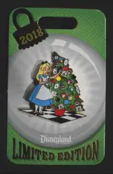 Alice is a Limited Edition (LE) 2000 pin from the Happy Holidays 2018 pin series. It was originally released on , 2018 and was available from Disneyland Resort .
