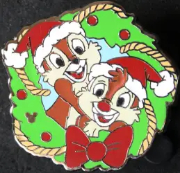 Chip and Dale is an Open Edition pin from the Hotel Lanyard Collection - 2006 Disneyland Resort Holiday Wreath pin series. It was originally released on , 2006 and was available from Disneyland Resort .