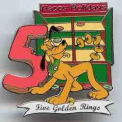 Five Golden Rings is a Limited Edition (LE) 1500 pin from the Twelve Days of Christmas 2002 Collection pin series. It was originally released on , 2002 and was available from Disneyland Resort .