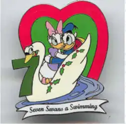 Seven Swans A Swimming is a Limited Edition (LE) 1500 pin from the Twelve Days of Christmas 2002 Collection pin series. It was originally released on , 2002 and was available from Disneyland Resort .