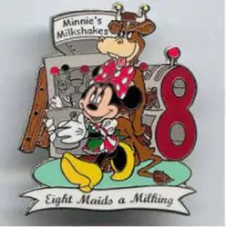 Eight Maids a Milking is a Limited Edition (LE) 1500 pin from the Twelve Days of Christmas 2002 Collection pin series. It was originally released on , 2002 and was available from Disneyland Resort .