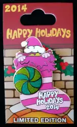Cheshire Cat is a Limited Edition (LE) 3000 pin from the Happy Holidays 2014 - Stockings Set pin series. It was originally released on , 2014 and was available from Multiple Sources (WDW, DLR, etc.).