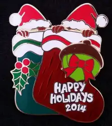 Chip & Dale Chaser is a Limited Edition (LE) 1200 pin from the Happy Holidays 2014 - Stockings Set pin series. It was originally released on , 2014 and was available from Multiple Sources (WDW, DLR, etc.).
