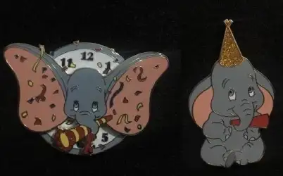 Dumbo New Year 2-Pin Set (SURPRISE) is a Limited Edition (LE) 200 pin from the New Year's Eve/Day pin series. It was originally released on , 2017 and was available from Disney Studio Store Hollywood / Soda Fountain .