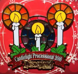 2016 Stained Glass Candles is a Limited Edition (LE) 1500 pin from the Disneyland Candlelight Processional pin series. It was originally released in December, 2016 and was available from Disneyland Resort .