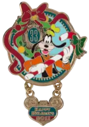 2011 - Goofy with Candy Cane is an Open Edition pin from the Club 33: Happy Holidays Dangle Series pin series. It was originally released on , 2011 and was available from Disneyland Resort .