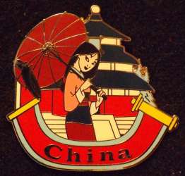 China (Mulan) is an Open Edition pin in the EPCOT World Showcase Starter Pin Set 11-pin set from the EPCOT World Showcase pin series. It was originally released on , 2009 and was available from Walt Disney World .