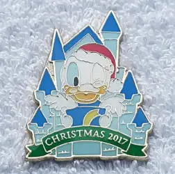 Jungle Carnival - Disney Gifts of Christmas 2017 - Castle - Donald is a Limited Release pin from the Tokyo DisneySea Abu's Bazaar Game Prizes pin series. It was originally released on , 2017 and was available from Tokyo Disneyland Resort .